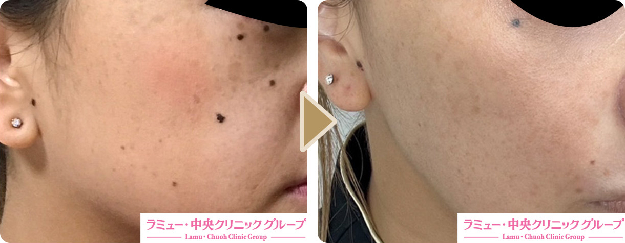 - 浅いホクロの場合は1度で除去できますが、ホクロが深い場合は複数回の治療が必要となります。